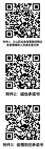 1、个人报名。根据兰山区疫情防控工作要求,本次招聘采取线上报名的方式进行,报名时间2022年3月28日至4月12日。电子版材料包括:二代居民身份证(正反面)扫描件、毕业证(有学位证的一并提供)扫描件、学信网学历查询证明扫描件(学信网查询并打印)、相关职业资格证扫描件、退伍证明(报名人员为退伍军人的提供)扫描件、《兰山区应急管理局招聘应急管理辅助人员报名登记表》《诚信承诺书》《疫情防控承诺书》(《诚信承诺书》和《疫情防控承诺书》签名后的扫描件)、近期1寸免冠彩色照片(电子版)等材料。请将以上报名材料做成电子版打包上传至邮箱:lsqyjgljzp@163.com。邮件发送主题格式为:“姓名+电话”。提报完资料须致电0539-8311607确认(确认时间为工作日8:30-12:00,14:00-17:30),未经电话确认报名无效。招聘具体事宜可到兰山区政府网站(http://www.lyls.gov.cn/)或“安全兰山”微信公众号查询,下载报名登记表、承诺书。