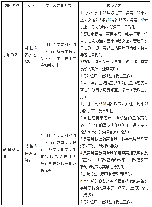 临沂市科技馆为市科学技术协会所属副县级公益一类事业单位,是集展览教育、科普影视、科普研学、观众服务等功能于一体的综合性科普场馆。现面向社会公开招聘15名展厅工作人员。现将招聘事项公告如下: