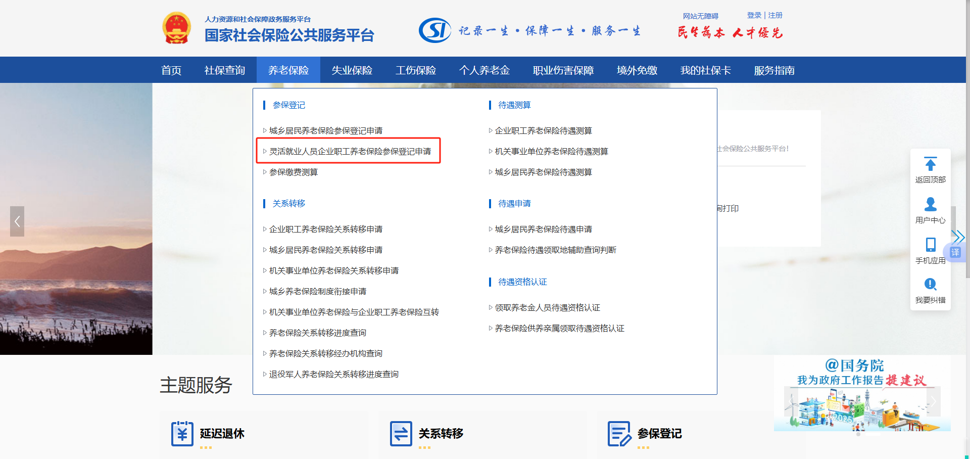 未达到法定退休年龄的灵活就业人员可在“国家社会保险公共服务平台”(http://si.12333.gov.cn/)登录后在“养老保险—灵活就业人员企业职工基本养老保险参保登记申请”中根据提示办理灵活就业人员企业职工基本养老保险参保登记。