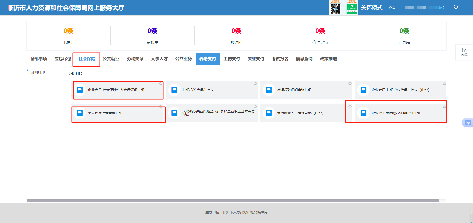 个人权益记录单及个人缴费证明查询打印: