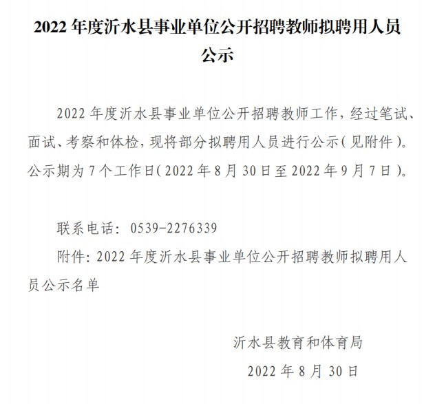 附件:2022年临沂沂水县事业单位公开招聘教师拟聘用人员名单